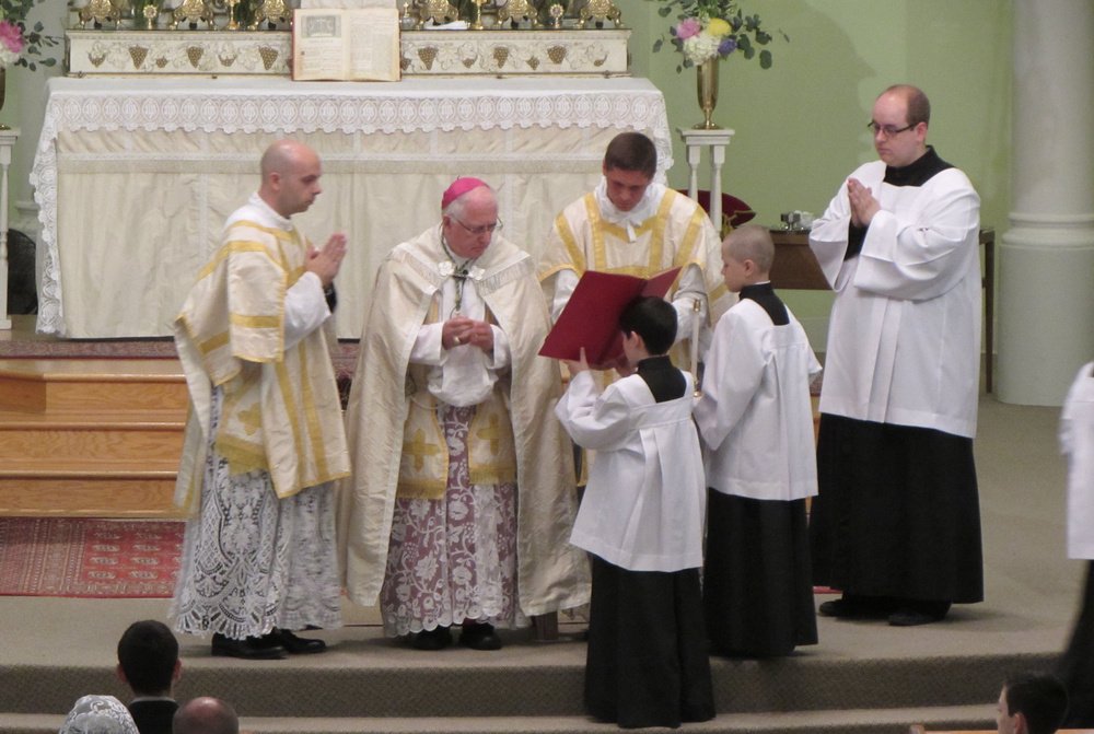 The undertaking of projects of greater scope came shortly after with the installation in 2015 of a fervently desired altar rail. Made of cherry and spanning the church’s 70-foot transept, it is the result of the skilled work of two talented parishioners. In 2018 that same team successfully met the challenge of creating a faithful replica of the original stairs that made it possible for Saint Anne to once again be fitted with a traditional pulpit. Several months later they would go on to ensure the installation of a new hardwood floor in the sanctuary.